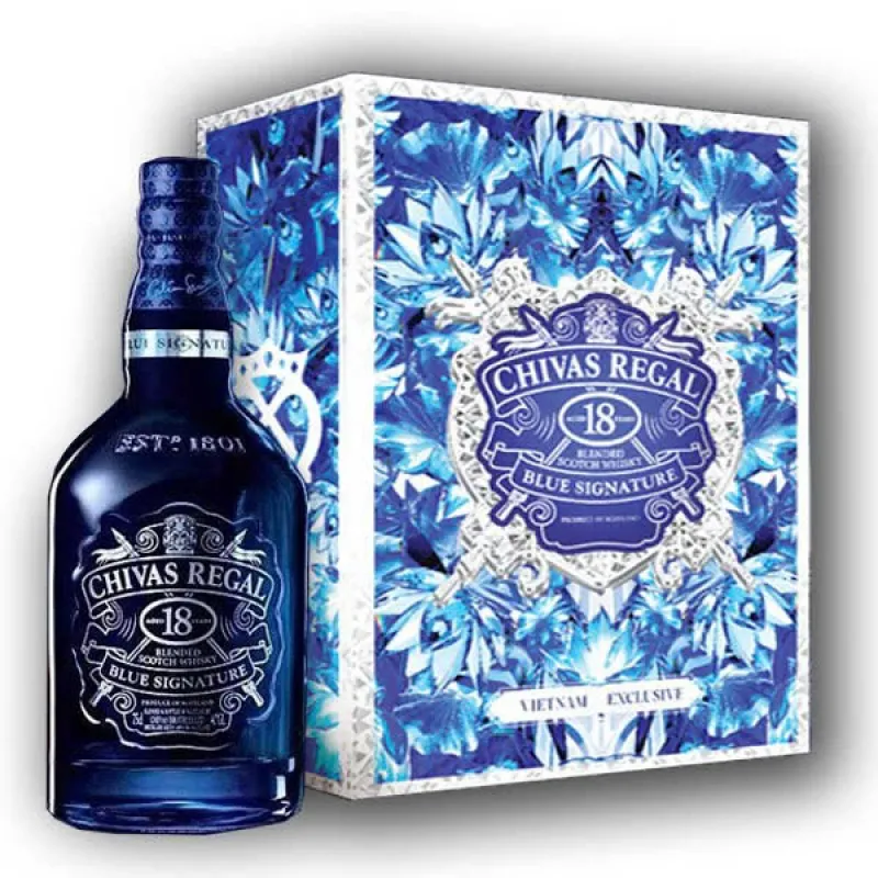 Chivas Regal 18 Blue Signature là phiên bản đặc biệt nằm trong dòng Chivas Regal 18 năm tuổi, được pha trộn từ nhiều loại whisky mạch nha và whisky ngũ cốc cao cấp, ủ ít nhất 18 năm. Phiên bản này nổi bật với thiết kế sang trọng và hương vị phong phú, dành cho những người sành rượu muốn thưởng thức sự tinh tế pha lẫn nét hiện đại.